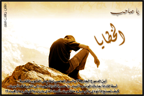 : مقوله لابن الجوزي اعجبتني فجعلتها في تصميم بسيط يا صاحب الخطايا : أين الدموع الجارية ؟ يا أسير المعاصي ابك على الذنوب الماضية ، أسفاً لك إذا جاءك الموت و ما أنبت ، وا حسرة لك إذا دُعيت إلى التوبة فما أجبت ، كيف تصنع إذا نودي بالرحيل و ما تأهبت ، ألست الذي بارزت بالكبائر و ما راقبت ؟! حاولت رفعها بمركز التحميل ولكن لم ترتفع لا اعلم ما السبب فوضعتها مرفقه رأيكن غالياتي |