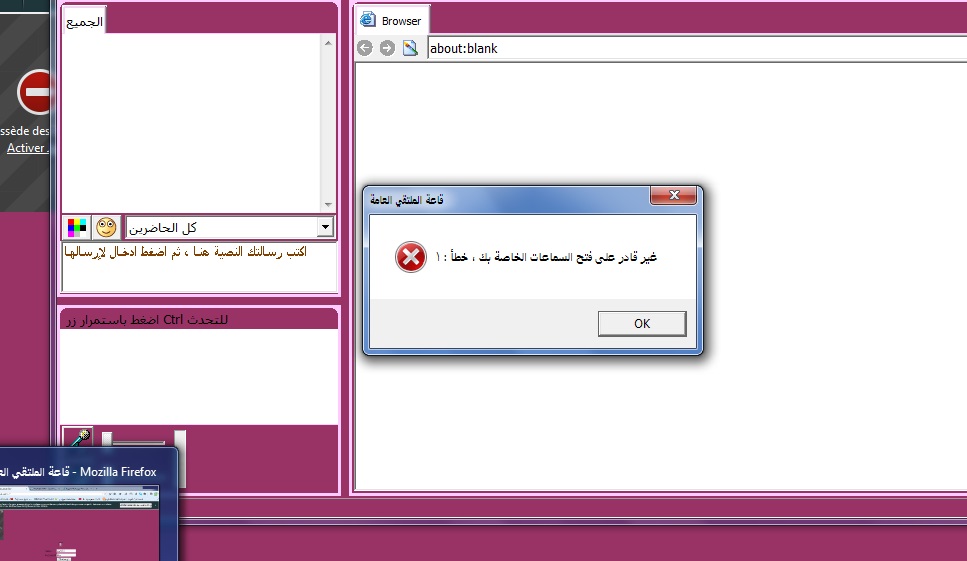 اصلحت الامر اختي بارك الله فيك والتحقت بالغرفة بحمد الله ومعونته ان امكن تنزلن لنا تسجيلات بالغرفة لنتمكن من تدوين المحاضرات اخيتي وبارك الله فيكن ولكن